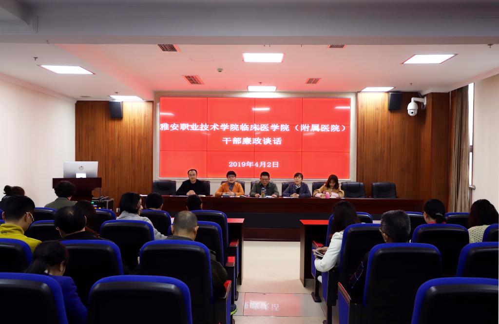4月2日下午,3044am永利集团3044noc在门诊大楼10楼学术厅举行2019年中层干部集体廉政谈话,3044am永利集团3044noc党政领导和36位续聘、轮岗中层干部参加,谈话会由党总支书记祝继英主持。