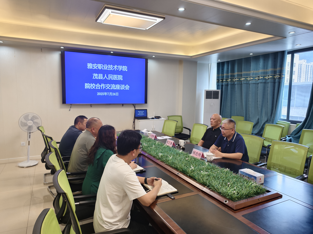 在茂县人民医院的座谈会上,樊正康副校长介绍了学校专业布局、人才培养模式及近年教学成果。双方就临床医学人才需求、实习基地共建、毕业生输送等展开深度探讨,达成多项合作意向。医院方高度认可雅职院培养质量,提出对护理、影像技术等专业人才的迫切需求。
